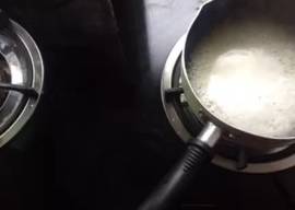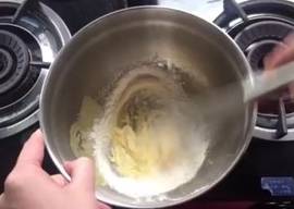 將水、黃油、鹽一起放入奶鍋中。煮沸