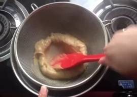 將卡仕達醬過篩一次。然後用保鮮膜包裹好放入冰箱冷藏備用
