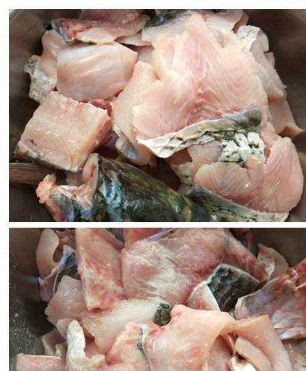 1.草魚洗凈,沿著骨骼方向橫向剖成兩半,再片出魚片,用清水沖凈血水後,控除水分。