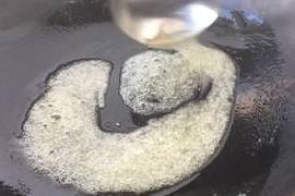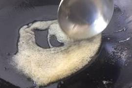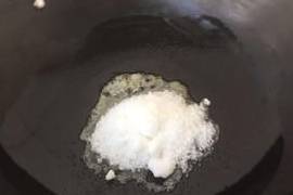 鍋內留底油燒熱,放入白糖不停的攪拌(要多放一些糖,太少的話拉不出絲)