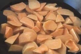 起小泡變色的同時,馬上倒入地瓜翻炒