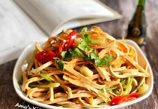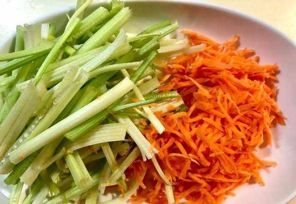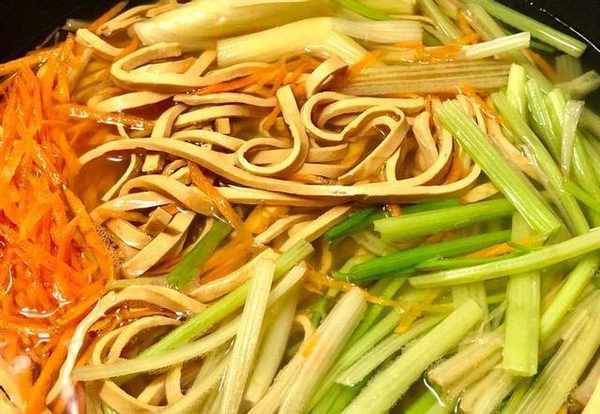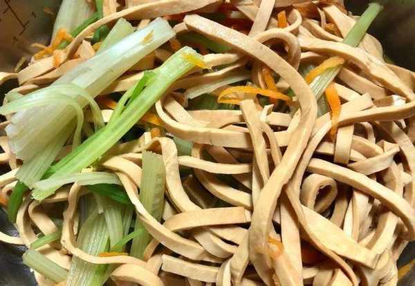 食材:黃豆幹絲300克、芹菜120克、紅蘿卜40克