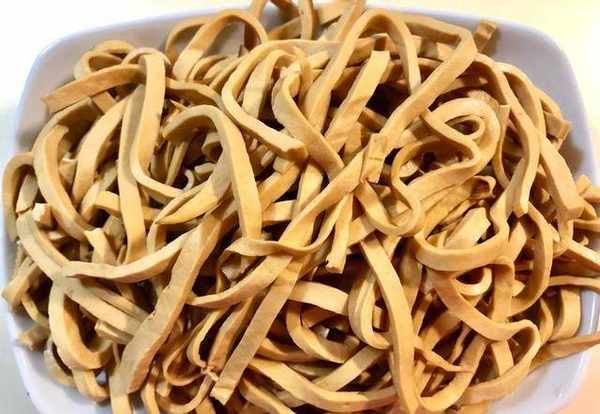 1、黃豆幹絲,豆制品攤買得到,可放冷凍保鮮,烹煮前一天放冷藏解凍,洗過瀝幹。