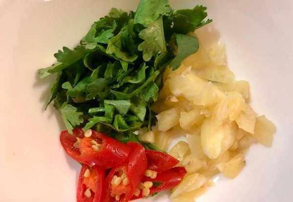 香氣材料:香菜1株、蒜瓣4瓣、辣椒1/2根