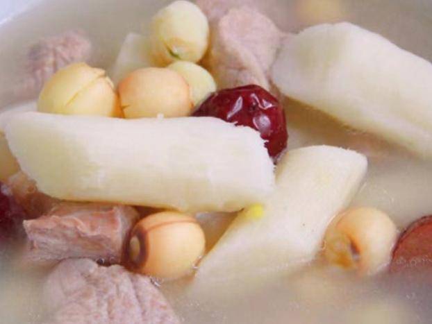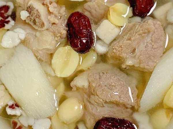 3、接著放入紅棗、蓮子和山藥繼續燉煮半個小時。燉煮好瞭之後,加入適量的食鹽和胡椒粉調味,撒上蔥花即可出鍋開吃。