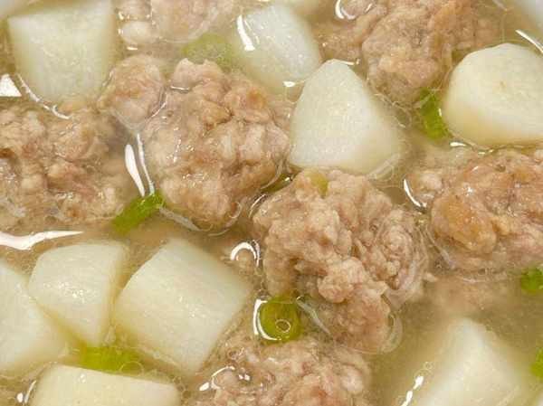 3、然後轉成小火,放入肉丸子,加入適量的食鹽調味,轉中火繼續煮2分鐘,煮好之後,撒上蔥花即可出鍋開吃。