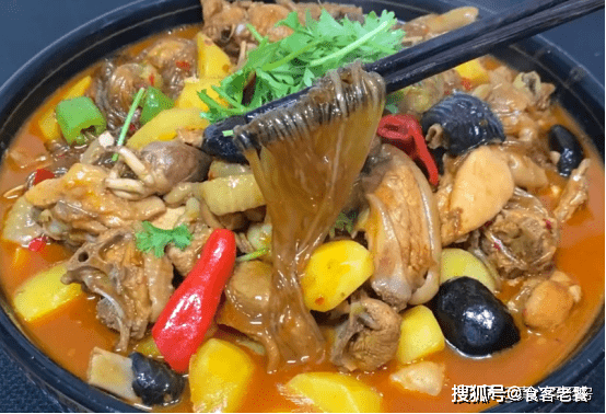 時間到瞭加入土豆,再次蓋上鍋蓋燉十分鐘,然後放上提前泡好的粉粉條,調味加入食鹽,雞精,胡椒粉,白糖,然後放入青紅辣椒,蓋上鍋蓋,再燜上三分鐘,出鍋前淋入少許香油。一道美味的土豆燉雞就做好瞭。
