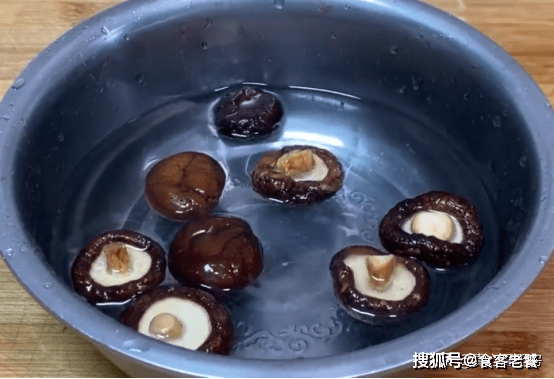 然後加入清水,把雞肉多清洗幾遍,洗凈後控水備用。幾個幹香菇清洗幹凈,然後加入熱水浸泡10分鐘。