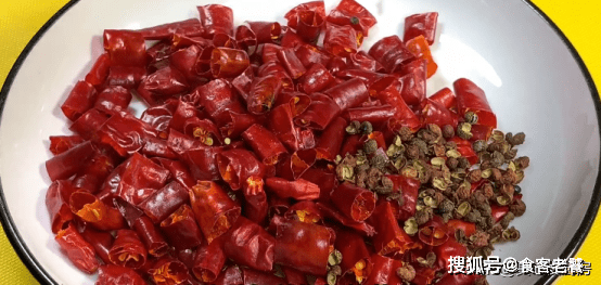 接下來準備點薑蒜,拍扁後切成薑蒜末,幾根小蔥,蔥白蔥葉分別切成蔥花。多準備一些幹辣椒,用剪刀剪成辣椒圈,把多餘的辣椒籽抖出來不要,在準備一把幹花椒,小半碗提前炸好的花生米