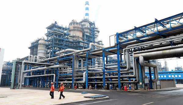 山東臨淄,齊魯石化勝利煉油廠煉油裝置。