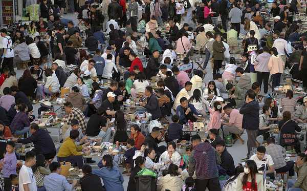 2023年4月29日,山東淄博,秩序井然的萬人大場面,每人一個小馬紮。