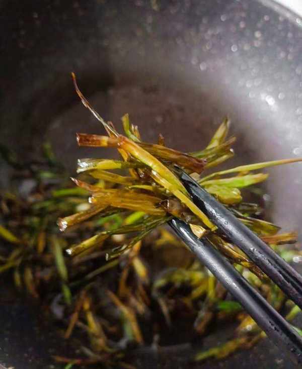 2.鍋中加入適量的油,燒熱,放入蔥段炸