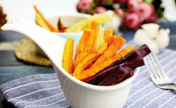 第二步:在紫薯、紅薯、南瓜上均勻抹一層黃油,再均勻抹上蜂蜜。