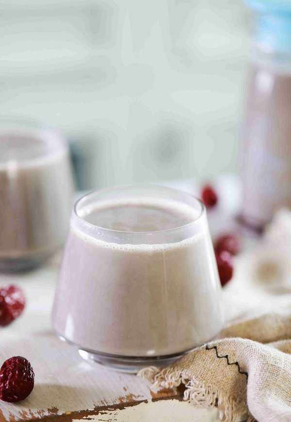 第一步:將紅棗去核,用剪刀剪成小塊。將黃豆和黃豆浸泡一夜。