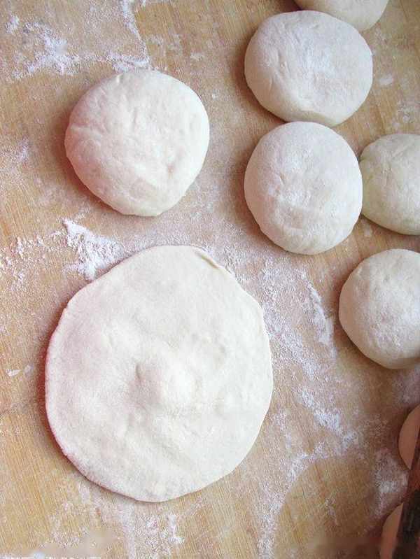 8,把發酵好的麵團揉5分鐘,分成小劑子,擀成外薄當中厚的包子皮。