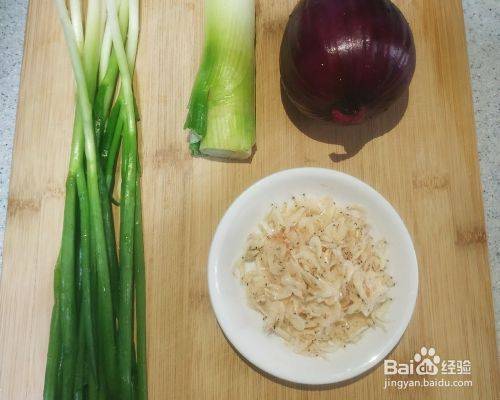 1在準備階段,洋蔥被切碎,洋蔥被切碎,蔥被切成長段。