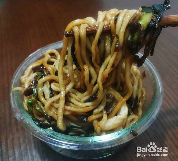 8把洋蔥油汁倒在面條上~先加一些,如果不咸的話再加一些~