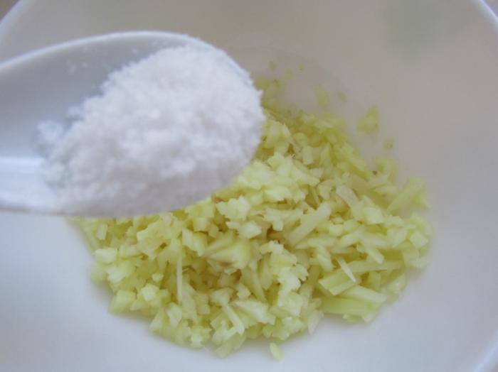 把薑切末,加入少許鹽和白糖還有米醋拌勻。大閘蟹螃蟹性鹹寒,又是食腐動物,所以吃時必蘸薑末醋汁來祛寒殺菌,不適宜單吃,最好蘸食醬醋汁。