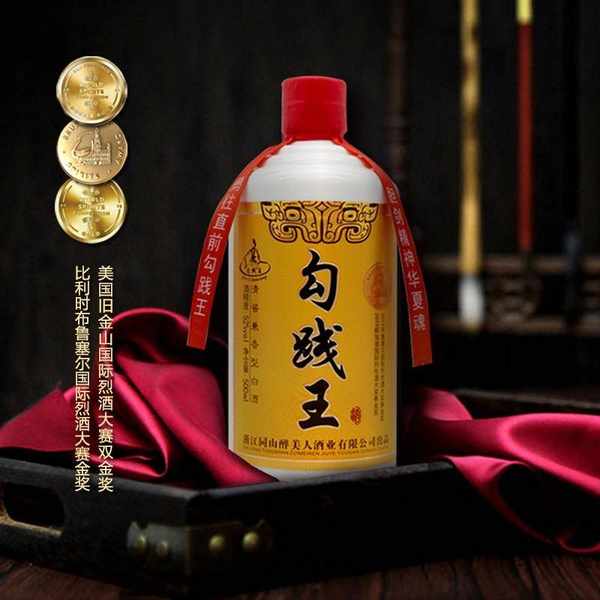 勾踐王酒是產於浙江省諸暨市同山鎮的一款著名白酒。勾踐王酒是一款以大曲、小曲、高粱、水為原料,采用傳統釀造工藝釀制而成的白酒。曾多次在佈魯塞爾、巴黎、新加坡、舊金山等國際烈酒比賽中獲得金獎,是浙江地產白酒中的佼佼者。