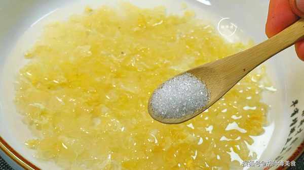 【白糖法泡銀耳的原理】:因為將白糖放入到水中後,可以增加水的滲透壓,而銀耳在高糖濃度的水中,會使銀耳加快吸收速率,從而使銀耳快速膨脹。而銀耳吸收少許糖後,它會變得更軟,在煮的時候,銀耳中的膠質能更快的和水結合在一起,從而使銀耳15分鐘煮出膠。