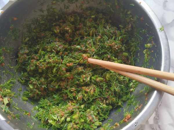 第三步:茴香苗清洗乾淨備用。茴香苗營養豐富,是茴香的嫩苗,含維他命、胡蘿蔔素、鈣、鐵等營養物質,並含有茴香油,可以健胃行氣、促進消化。而且茴香苗還有一定的祛濕,止痛和抗菌等作用,是很不錯的一種蔬菜。清香的味道很喜歡,做餡包餃子蒸包子都很棒。