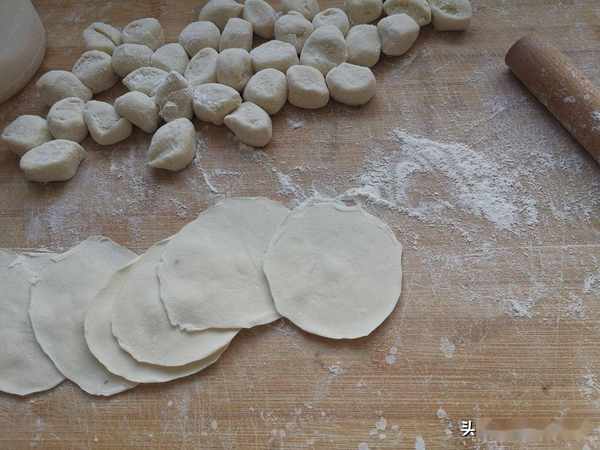 第六步:麵團搓成長條,揪成小劑子,按扁擀成餃子皮。