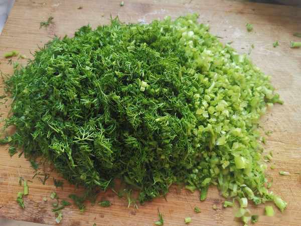 第四步:把洗淨的茴香苗切成碎末。