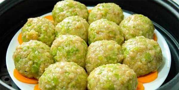 2、接下來把土豆切丁、苦瓜丁放進肉餡裡面,加一些淀粉,充分地攪拌均勻,接下來把肉餡團成小球,放到蘿卜片上面,再放進蒸鍋裡面蒸15分鐘左右。
