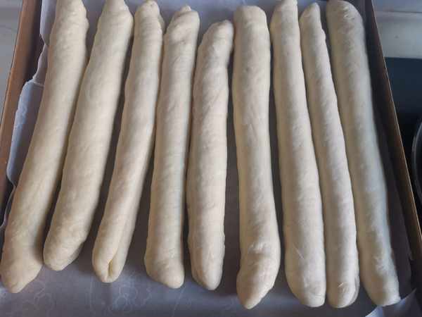 第三步:卷起來成為長條狀,再用手搓成長條。