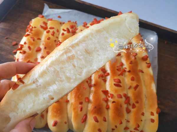 第七步:這樣烤出的麵包暄軟拉絲特好吃,比賣的强多了,喜歡就趕緊試試吧。