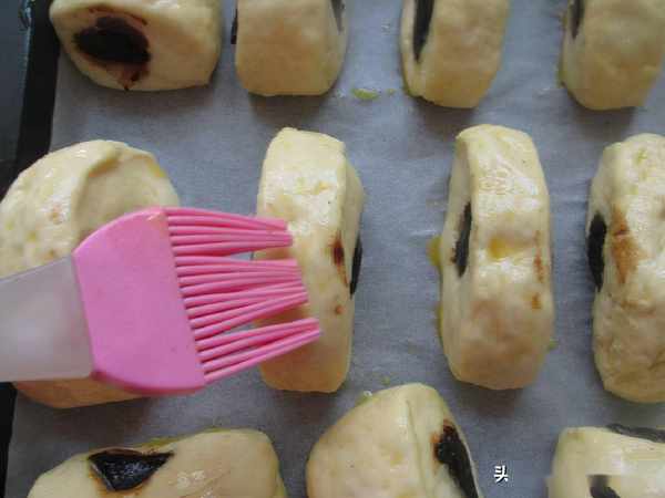 8,放到烤盤上二次發酵約30分鐘,刷上蛋液