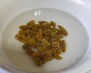 第一步:把葡萄幹用清水洗幹凈泡上(溫水泡葡萄幹會軟一點)