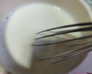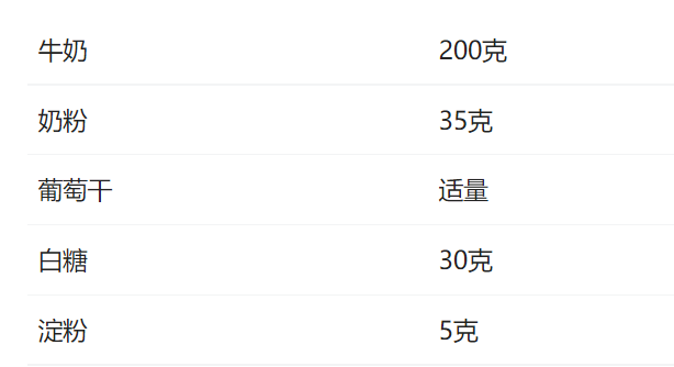 第二步:將牛奶,奶粉,白糖,淀粉,倒入鍋中,攪拌均勻(這裡的淀粉最好用玉米淀粉)。然後開小火煮,邊熬邊攪拌,大概十分鐘之後關火。倒入泡好的葡萄幹,攪拌均勻倒入模。