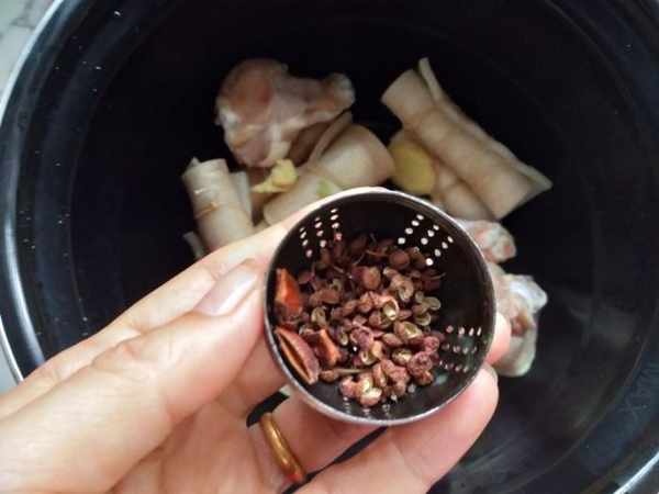 第四步:把花椒,大料放入料盒中擰緊,放入壓力鍋中。