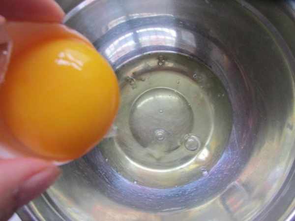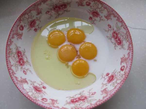 第二步:先把雞蛋的蛋清和蛋黃分開,分別放入盆中。