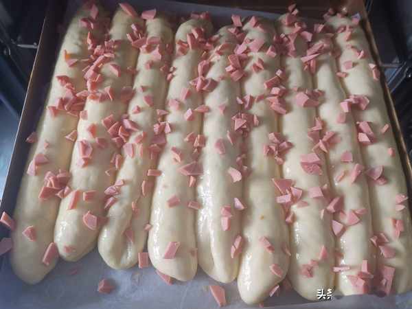 第五步:刷上蛋液,撒上切好的火腿碎。
