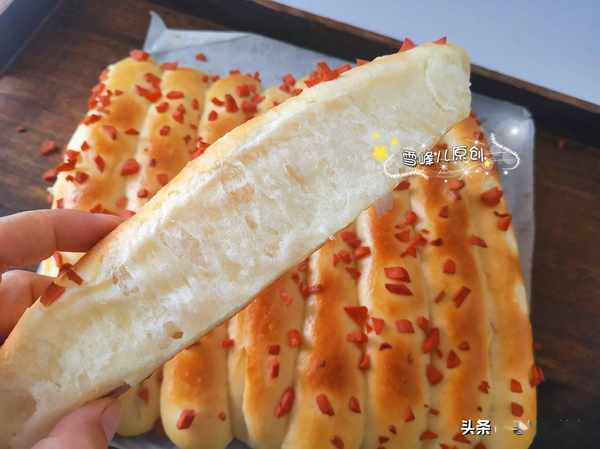 第七步:這樣烤出的麵包暄軟拉絲特好吃,比賣的强多了,喜歡就趕緊試試吧。