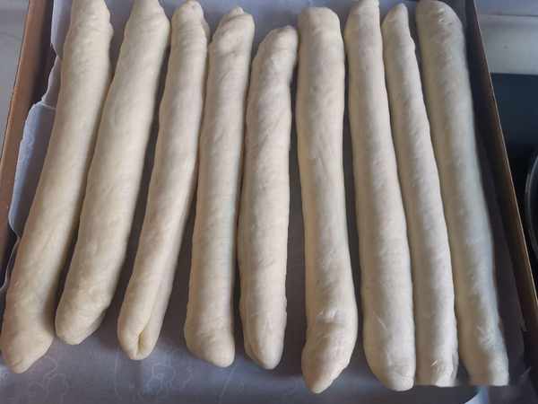 第三步:卷起來成為長條狀,再用手搓成長條。