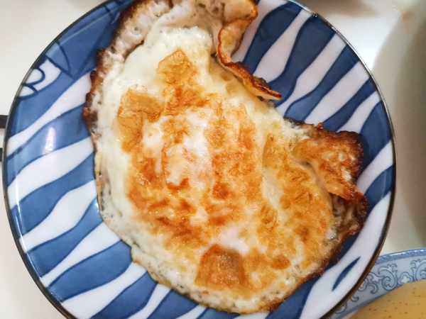 煎蛋,就是普通的煎荷包蛋做法。如果用不了鐵鍋,可以用不粘鍋來煎更加的省勁。煎蛋的老嫩程度自己掌控就好。