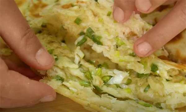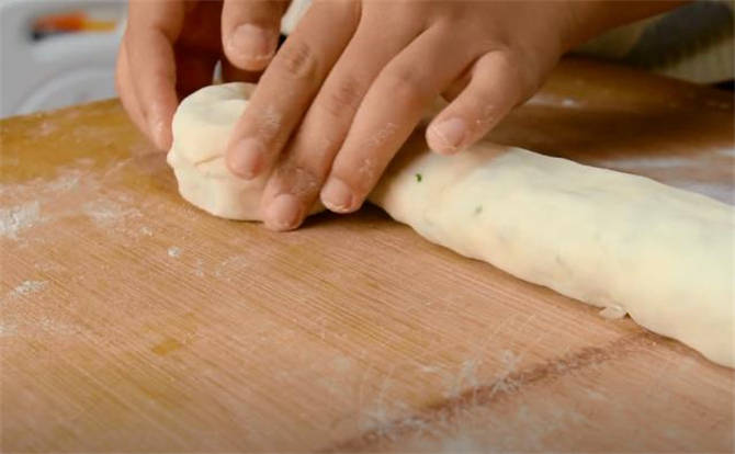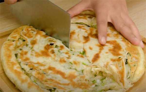 7.看看裡面的蔥花,一層層的全部佈滿瞭,特別好吃,還有蔥花的香味,外皮是很酥脆的,喜歡就趕緊在傢試試吧。