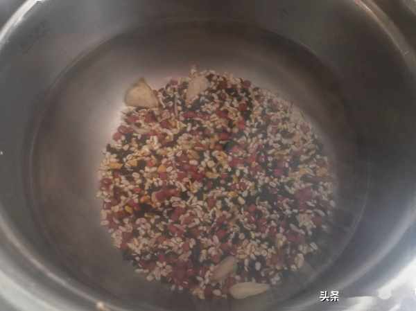 所用資料:玉米碴子1小勺,紅豆1小勺,麥米1小勺,黑米1小勺,百合1小勺。