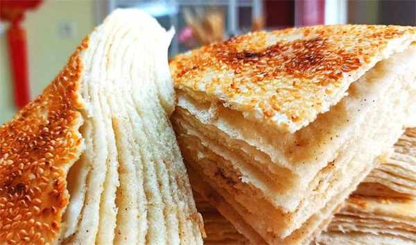 10.咱們這個油鹽千層餅終於做好瞭,外面非常的酥脆,裡面的層次超級多,這個餅其實一開始蒸好之後就可以直接吃瞭,為瞭追求口感,我又烙一烙,烙好之後表面的芝麻特別的香,非常的好吃,特別適合有老人和小孩的傢庭,喜歡可以自己試一試。