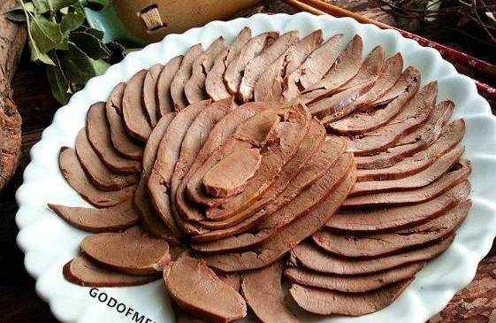 菜肴特點:色澤紅潤,肉質鮮嫩,味濃醇香。凈鍋添適量的清水,下豬心加料酒、鹵水汁、老抽、鹽、冰糖、蔥薑和包好的調料包。燒開後用手勺撇去浮沫,加蓋小火燉一小時十五分鐘至豬心完全成熟。關火,將豬心在鹵汁中泡三、四個小時。