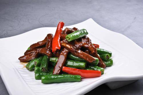 杭椒炒牛柳骨:挑去牛肉的筋膜,將牛肉橫切成約一厘米的粗條,用淀粉、醬油小蘇打和一大匙油拌勻醃制十分鐘。杭椒用刀拍松,斜切成段待用,紅尖椒切絲待用。炒鍋燒熱,放入多一些的油,燒至三成熱時,放入牛柳滑炒至變色,撈起瀝幹油待用。鍋中留三大匙油,放入蒜蓉炒香,放入杭椒炒斷生。放入牛柳和紅尖椒絲同炒,加入料酒蠔油炒勻即可。不知引來多少小孩兒渴求的目光。