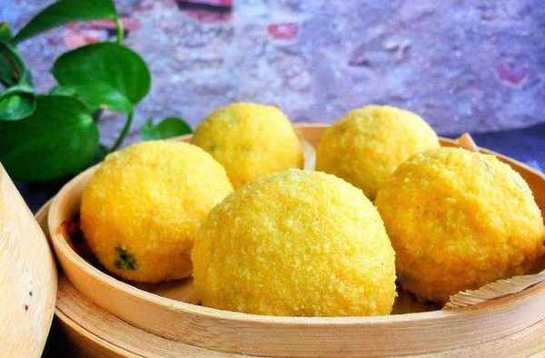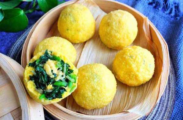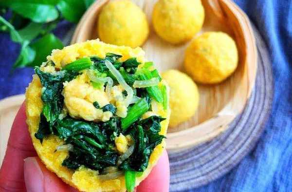 &營養低脂的菠菜雞蛋玉米面菜團子&