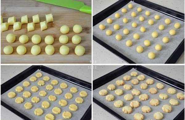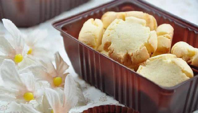 材料:低筋面粉100克,玉米淀粉100克,無鹽黃油90克,熟蛋黃2個,鹽1克,白糖粉60克。
