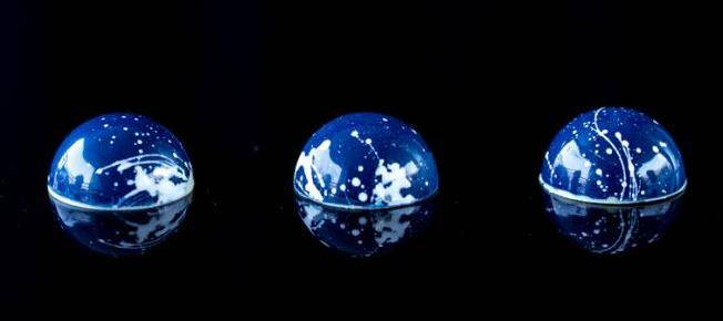 看看這個,有沒有一種美輪美奐的感覺,面對這個夢幻星空樣子的巧克力,你是真的舍得下嘴吃嗎?我真的很佩服制作甜品的這個人,簡直是天才啊,每一個都非常漂亮,在看最後一個。