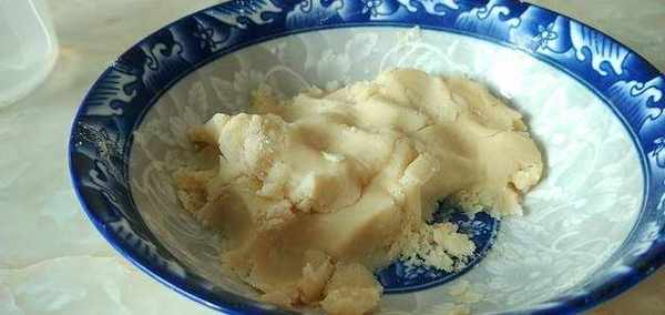 2、另一個小碗中加入100克面粉,70克食用油。和成油酥。這個揉不成團,搓勻就可以瞭。