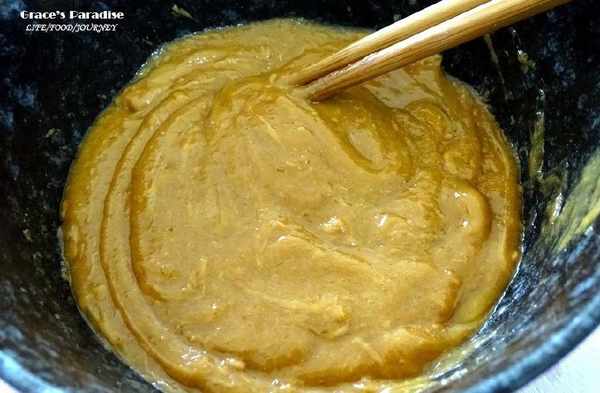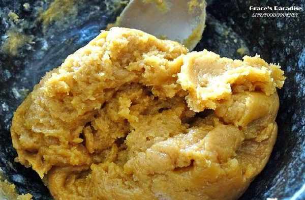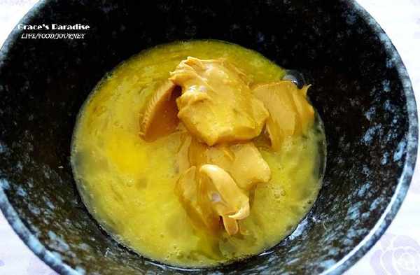 將花生醬加入糖蛋液中繼續攪拌均勻
