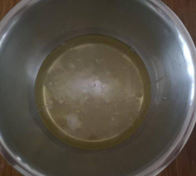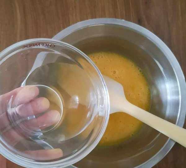 第4步、清水倒入蛋黃中,攪拌均勻。